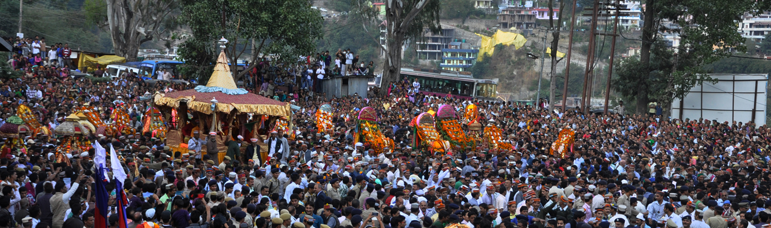 Raja Jagat Singh faithfully observed the suggestions of Bairagi Krishan Dutt and by and by, he showed signs of recovery from the dreaded disease. He was greatly influenced by the divine power of Rama, so much so that he abdicated his throne to the will of Raghunathji and became ‘Chharibardar’ of Raghunathji. This incident had a great impact in his state and as a consequence thereof all the Devis and Devtas accepted the overall lordship of Raghunathji. The Raja spent his order to all the ‘Kardars’ of all Gods and Goddesses of the state to assemble at Kullu on the festive occasion of Vijya Dashmi to first pay obeisance to Raghunathji and then participate